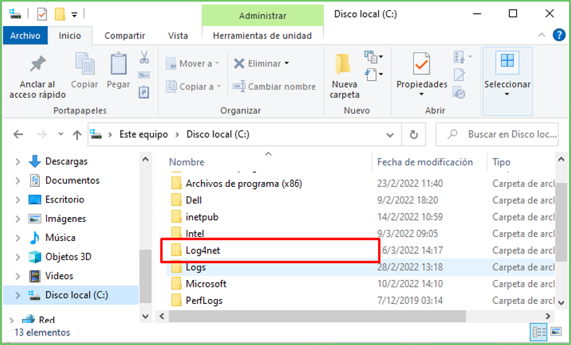 Una vez que el WcfFileTransfer detecto un error en el servicio este lo guarda en la ruta de la carpeta Log4net de nuestro disco C.
