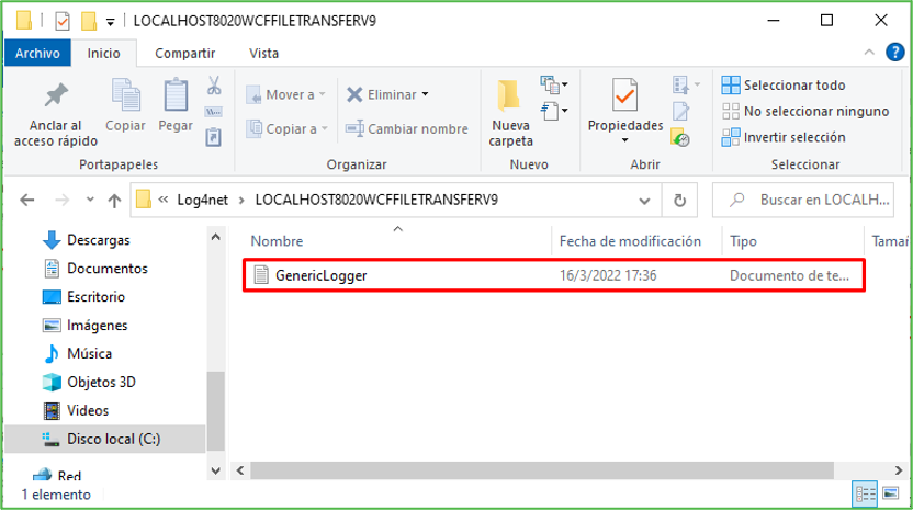 Una vez que se abre la capeta se encuentra un archivo de texto con el nombre de “GenericLogger”