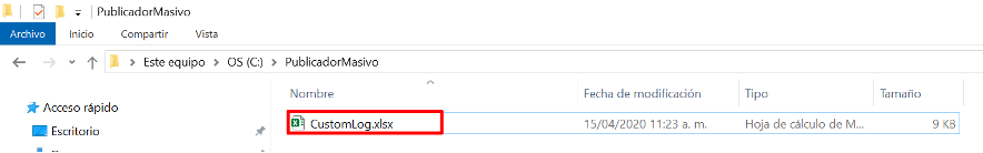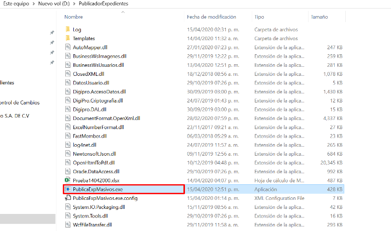 Ejecutar el archivo PublicaExpMasivos.exe para iniciar la aplicación