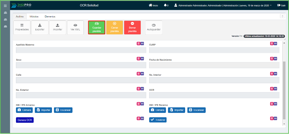 En los valores “INE Anverso” e “INE Reverso” se colocarían los elementos “Imágenes” que se encuentran configurados en la plantilla.