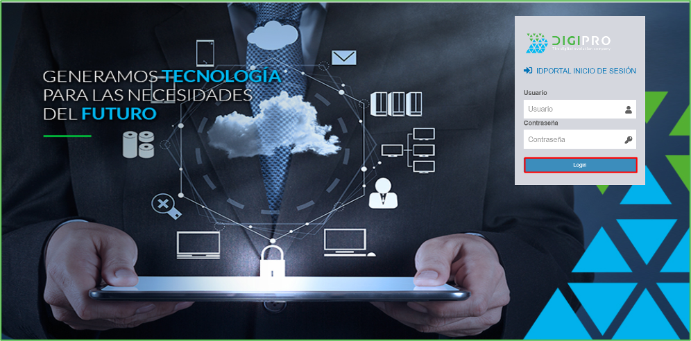 - Ingresar al IDPortal con usuario y contraseña existente y dar clic en “Login”.