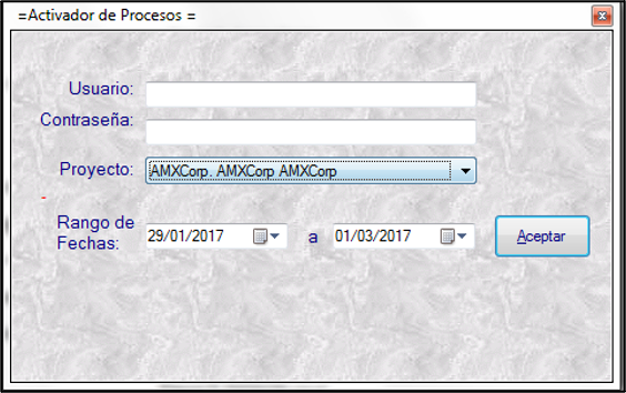 Esta aplicación arranca de manera automática por medio de algún despachador por lo que no presenta una manera directa de activarse, está diseñada para usarse tanto con el teclado como con el ratón.