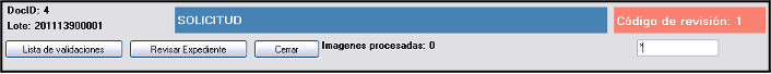 Una vez terminada la validación, se mostrará el código de revisión. Este código será un valor entre 0 y 9 que es generado de manera aleatoria, el objetivo de este número es garantizar que el operador esté consciente de que está por procesar un expediente y evitar las validaciones de corrido.